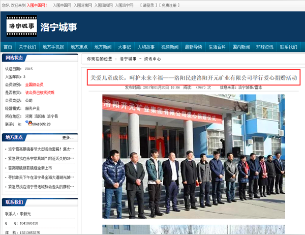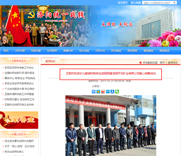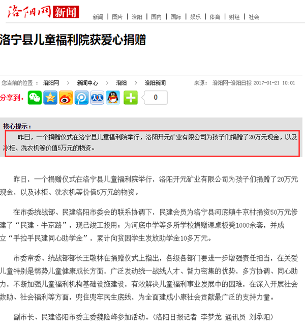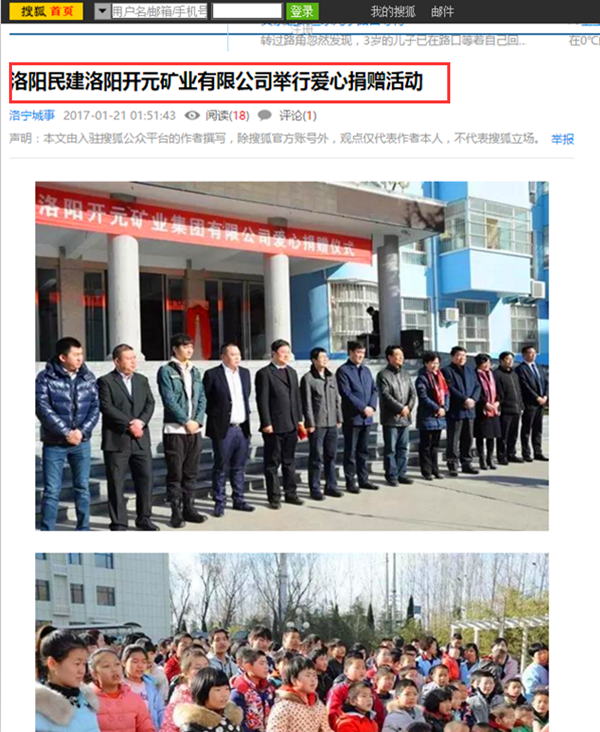 弘揚(yáng)社會正能量 愛心事業(yè)美名揚(yáng)——洛陽開元礦業(yè)集團(tuán)善舉引起國內(nèi)各大媒體高度關(guān)注